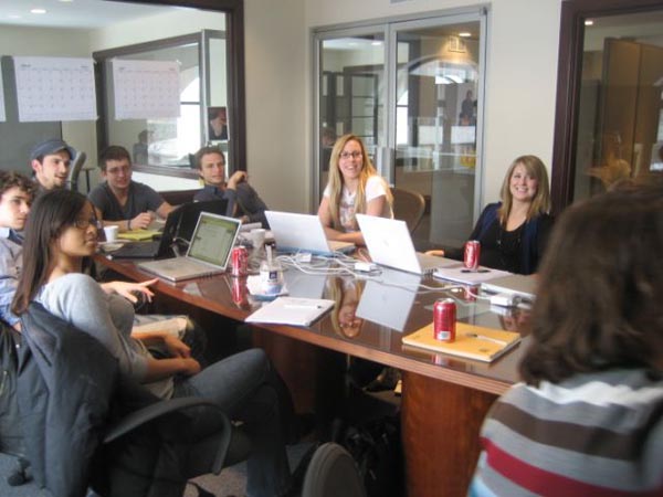 “I don’t have a job yet, but hopefully I will still be involved with the sitcom after graduation,” says Rachael Vail-Steele, 22, who’s part of the advertising, marketing and public relations team working with mentor Seyferth and Associates in Grand Rapids. Vail-Steele is majoring in advertising at GVSU and is working on the sitcom’s logo, as well as a signature for the delivery trucks. The team also has worked on market research, product placement and was in charge of arranging a recent press conference.