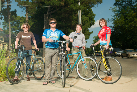 Hertl bikes or walks to the office, and she admits that her favorite part of biking is breezing by cars in traffic jams. Hood echoes that pleasure, but admits to not riding often since becoming a mom. Joining the team has her re-committed to biking and passing along healthy habits, along with a healthier community, to her children.