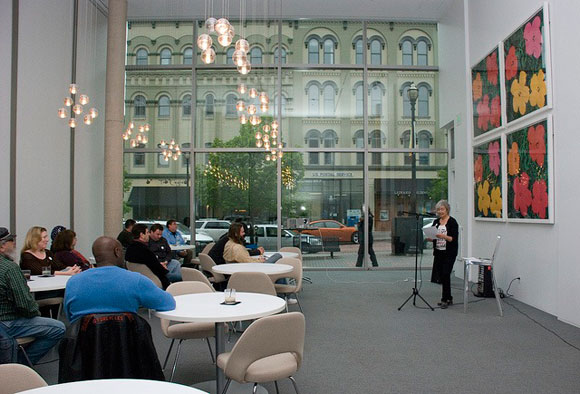 “As I walked back to the Art Museum from the session, I looked at the front glass-enclosed corner of the building and it hit me,” VanderHoff says about the idea to use the northwest corner of GRAM for the space.