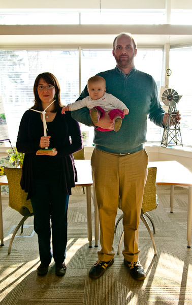 Rachel Hood, Ineke Petroelje and Dave Petroelje present their updated version of the American Gothic painting, complete with a windmill instead of a pitchfork, a baby and smiles. It’s all about what this generation can do for the next when it comes to protecting our environment.