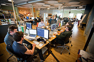 Only months after winning the Alfred. P. Sloan award for business excellence in workplace flexibility, Atomic Object (AO) will be making a major hiring push in 2011. With their revenue increasing by 20% over 2009, annual sales of over $4.1M and several large contracts including a two-year, $500,000+ contract renewal from the World Bank, AO will be aggressively spreading the word about their hiring needs and the cool workplace at their Wealthy St. SE headquarters. According to Carl Erickson, co-founder of AO, they will be looking to add 10 new people, primarily designers and developers. “We could of grown even more last year,” he indicates, a year in which he had to turn away work because their team was maxed out. Mike Marsiglia, VP, highlights the mobile applications market as a significant factor in their growth along with the increased customer demand from bringing design services in-house, which “allowed us to build better products.” Both Erickson and Marsiglia are quick to point out their agile software development process as another reason for their success. Agile development “is different than traditional approaches to software development,” says Erickson. “The customer is very involved from the beginning and the product is developed before their eyes.” This approach is very attractive to entrepreneurs and he highlights the recent launches of Bloomfire, Kidtelligent, Covenant Retirement Communities and Catalog Choice as examples of “building smaller and releasing faster.” AO plans to spread the message about employment opportunities through their blog as well as using a national search through targeted channels. For more information on AO, you can visit their website here. Sources: Carl Erickson and Mike Marsiglia, Atomic Object Writer: John Rumery, Innovation and Jobs Editor