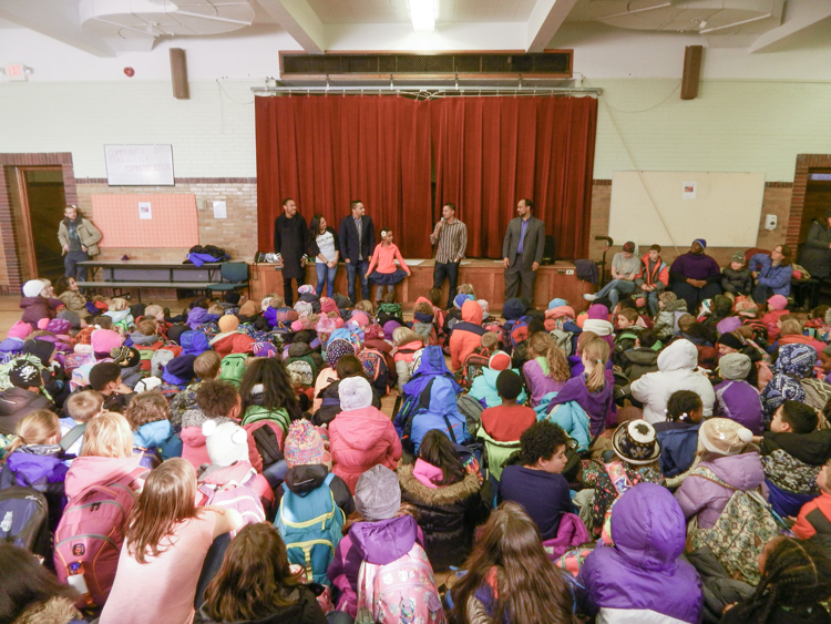 One by one, hundreds of students file into the Grand Rapids Child Discovery Center’s cavernous gym this past Friday, filling the space with a sea of colorful book bags and talk of the impending weekend. They do the things kids do when they gather together: they laugh; they braid each other’s hair; they excitedly wave to friends, parents and teachers as they wait, winter hats in hand, to exit the school doors and welcome the weekend. Like every Friday afternoon, they cover the school’s wooden floor to bid adieu to an eventful week and cheer on each other’s accomplishments. There is much to celebrate this past week: children’s birthdays, students’ artistic feats, lessons on Martin Luther King Jr., and more.