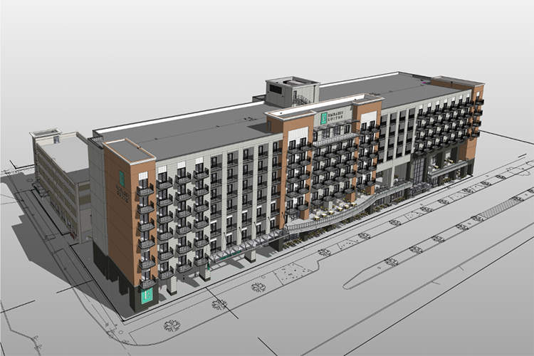 First derailed by the housing crash in 2009 and then again in 2014, build-out plans for the seven-story Embassy Suites have been in limbo for quite some time, but Suburban Inns is confident about its future with its new construction managers, Pioneer Construction. The company has set the new tentative completion date for summer 2019.