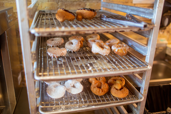 These late, mysterious hours also correlate with O’Haire’s shop’s theme: the detective story. “I like detective stories,” he says, adding that the theme also plays on the widely accepted idea that donuts are an off-limits indulgence. “If you’re going to say doughnuts are evil, let’s make an evil doughnut shop,” says O’Haire. Most of all, he seeks to make a playful, tasty product. “It was my goal to make something I wanted for breakfast and hopefully people like them,” he says.