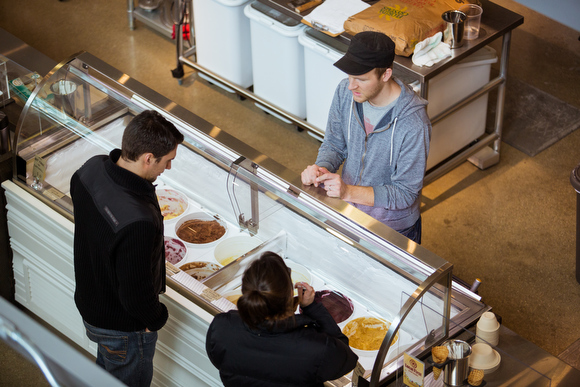 McKellar’s small size enables him to experiment with interesting flavors, like his MadCap Coffee ice cream, that play off other local businesses. Other unique flavors include hand-pulled peppermint stick during the holidays and blackberry ginger. “I’m always trying to be inventive,” he says. McKellar also carries Propaganda Cinnamon Bun ice cream, a rich confection that tastes just like the real thing. “Over time, we’ll be doing more things together,” says McKellar of his partnership with Propaganda Doughnuts founder Tory O’Haire.