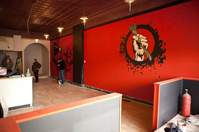 Cappelletti wouldn’t begrudge the association. In fact, he hopes to adorn the walls of their diner with Chinese communist propaganda, something that uses vegetables as political symbols. (Bartertown’s current logo is a pumped fist clenched around some stalks of asparagus.)