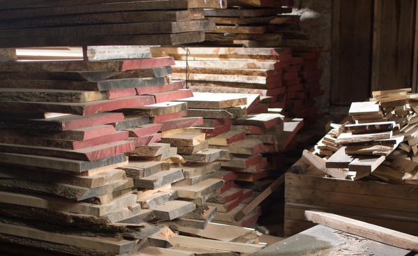 “We had a trucker drive in and ask if he could park his rig here,” Weaver says. He points at the immense logs still present in the parking lot, stacked high. They are called butt logs, the first log cut above the stump of a tree, darker and denser that the rest of the tree. “The trucker asked about all of these butt logs, what we do with them.”