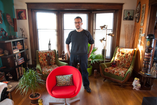Anthony Carpenter is a modern man living in yesterday’s modern world. Dwelling among tiki gods, enchanting women swathed in sarongs and fantastical monsters of his own creation, Carpenter is a working artist who has constructed his personal haven to the backdrop sounds of Martin Denny and Les Baxter. Put simply, this man has a penchant for thrift shops, retro album covers, monster movies of yore and all things tiki. And he’s got an impressive way with a pencil.