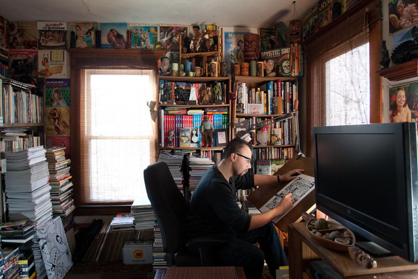 “I don’t know exactly how it starts,” says Carpenter. “It was just always there from the earliest of memories. I would lie on the floor in front of the television and just draw from comics and monster magazines. It was just something that I did.” Not much has changed.