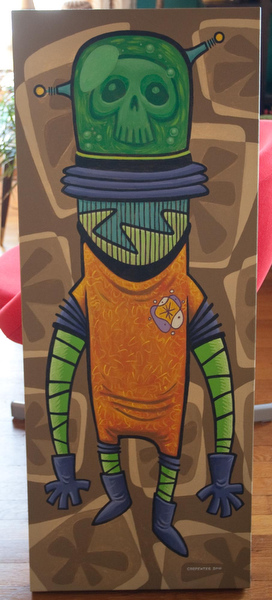 Another current and fitting project is for the company Monster Wax, creating collectible, original artwork cards to be included in sets of Spook Show trading cards, which feature images from old horror posters and the like.