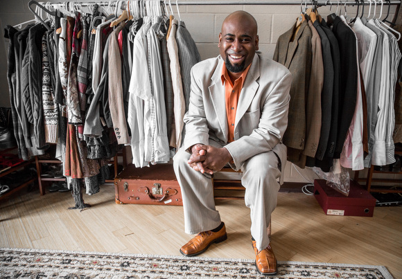 Kev Couture, with a little bit of the lots of clothing that he uses for styling in downtown Grand Rapids.