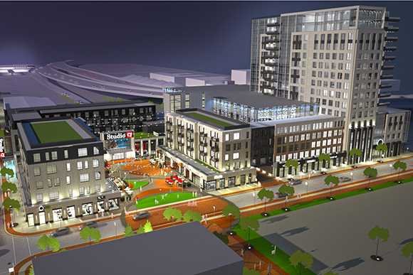 The development is proposed to be located south of the Van Andel Arena on city-owned properties bound by Oakes, Ionia and Cherry Streets.