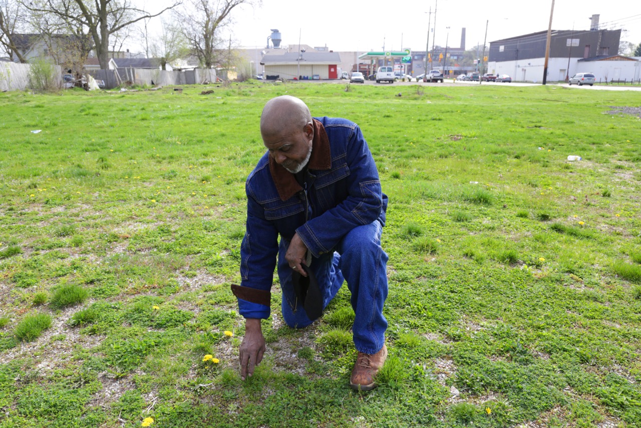 McGhee at his property on Hall Street, where he hopes to develop a farmers' market for the community.