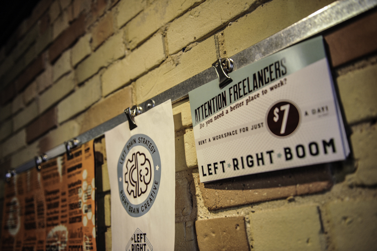 As an entrepreneur, it can be challenging to convey the same level of professionalism to prospective clients without having a solid home base. Additionally, the hustle and bustle of moving from coffee shop to coffee shop, fighting for table space and free Wi-Fi can be hectic. “Sometimes it’s all in your surroundings,” says Rian Morgan, Left Right Boom partner, designer and photographer. “If you’re in a coffee shop, that’s fine, but it’s really great to be able to have someone come in and sit down in the conference room, without all the background noise and being able to whiteboard things. That’s a big benefit.”