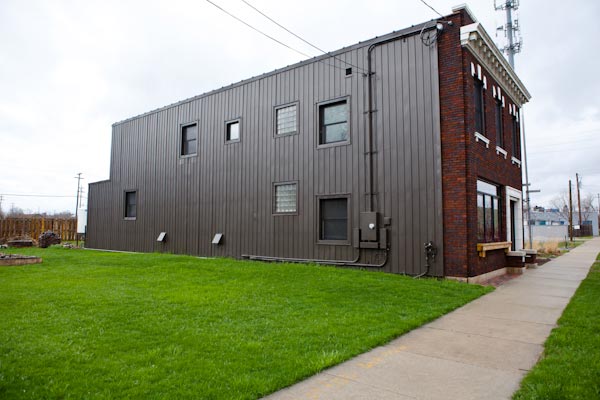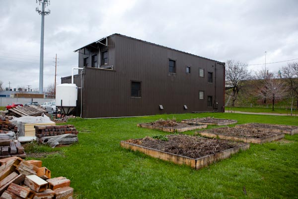 “We wanted to be close to downtown, but still have a cool project to experiment on and room to grow,” Muller explains. Some of the uses they’ve found for the surrounding land include an underground geothermal heating system, a garden they’ve fit into a vacant parking lot next to the property and a roof cistern that collects rainwater for reuse. “We wanted this building to be a sort of incubator for all things environmental and sustainable,” Muller says.