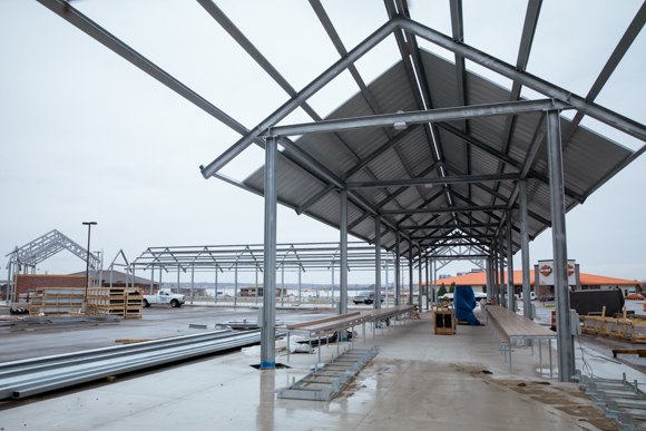 Pursuing an efficient and attractive design was also a vital factor in drawing vendors and patrons to the new market. Since the design team worked “directly with farmers,” says Steve Novak of T4 Group, the market’s contractor, the layout was crafted to work for both market vendors and consumers. “Every stall has its own electricity,” says Novak, in addition to heat and refrigeration, allowing each stall to function independently and provide fresh, local produce and food items.