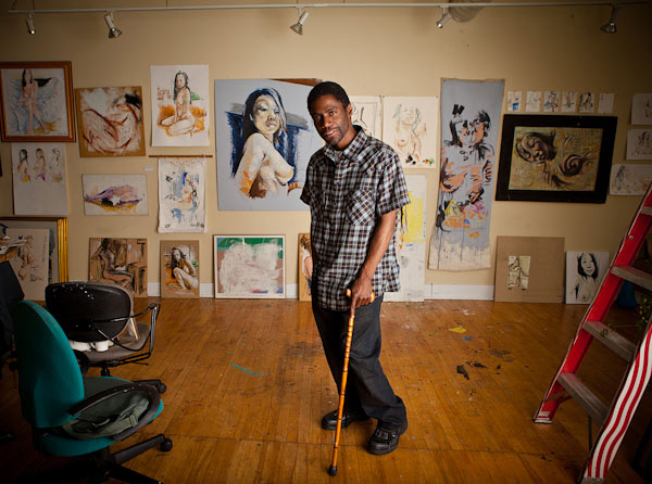Just as Hollowell was ready to settle down, the Dwelling Place began developing a live/work community for artists on Division. Derrick walked around the corner and signed up. Here was a chance to work with a group of artists on a project that was backed by the city. When it was time to divvy up the apartments, Hollowell was second on the list. His friend was first, but after meeting everyone, he felt that the mostly White residents were too young, too inexperienced and too middle class for the experiment to succeed. He dropped out, leaving Hollowell to take the second-floor corner apartment in the Martineau Building.