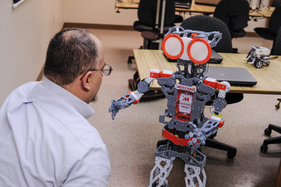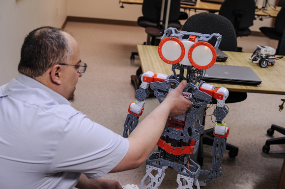 “I was going to practices and spending two and a half hours training the teachers on how to stand back and coach the students,” he says. “I would show the kids something with the robot, stand back and talk them through the next process. After 20 minutes we would put the basic training robot on the table and discuss the steps it would take to make it do what they wanted it to do.”