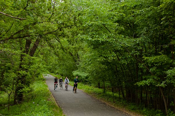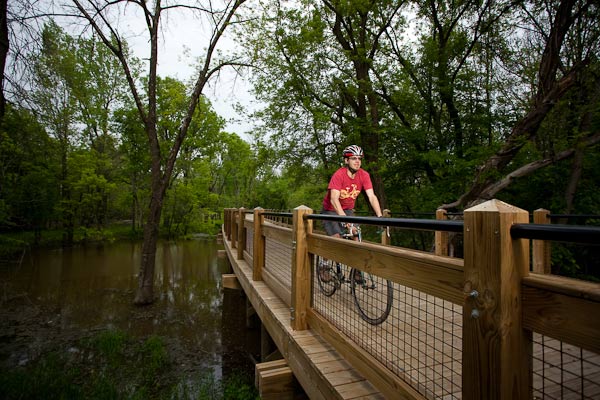 For Dunnam, the city’s bicycle planner when the position existed in 2005, the trails are a means of introducing citizens to cycling without having to interact with motorists, a potentially critical component for the region to increase bicycle commuters. To the 30-year-old Duggan, organizer of a popular fall color tour, the trails are a boon for the creative class.