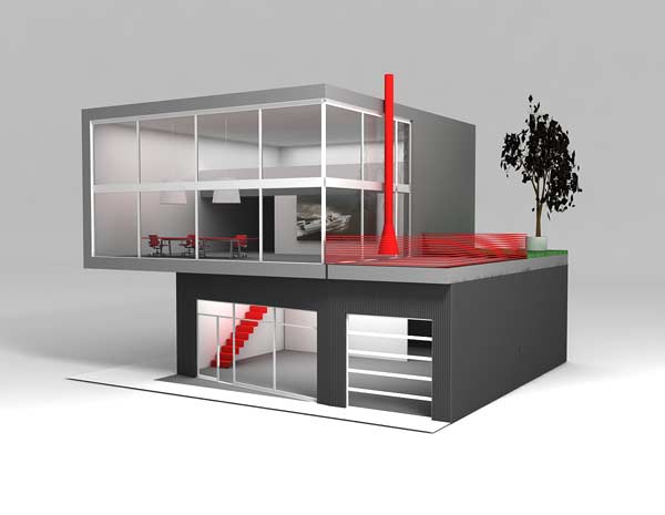 The design combines elements from previous workspaces into a single, new building on a 2,000-square-foot lot.
