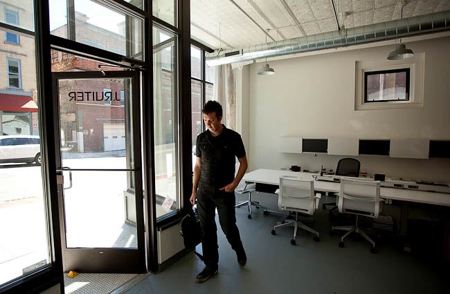 Ruiter moved his assets six months ago to Oakes, the most recent of several workspaces that together have been phases of an ongoing experiment. He previously worked at his Grand Rapids home, a task complicated by the presence of two children age two and younger. There also was a rented space that needed a bigger elevator to fit materials. There was an owned building with a ceiling too low. Ruiter even squatted for awhile in vacant buildings on Ionia Avenue SW.