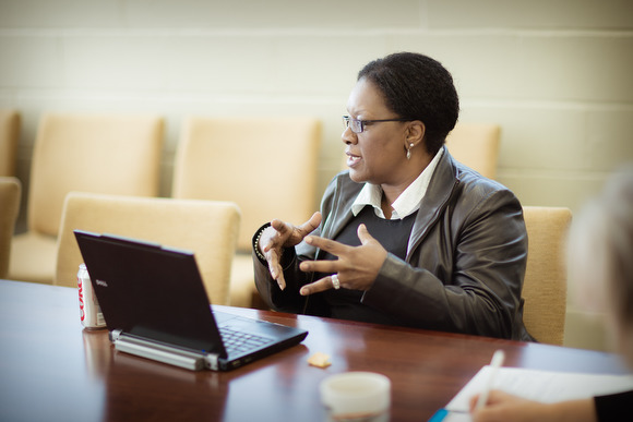 Fifth photo: Board member Faye Richardson-Green participates in a meeting with GRACE downtown.