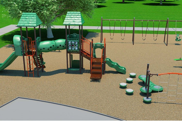 The refurbished playground will include a new swing set, a play structure with a slide and climbing area, dragonfly and stock cary play pieces, outdoor learning benches, and a new safe, engineered wood fiber surfacing.