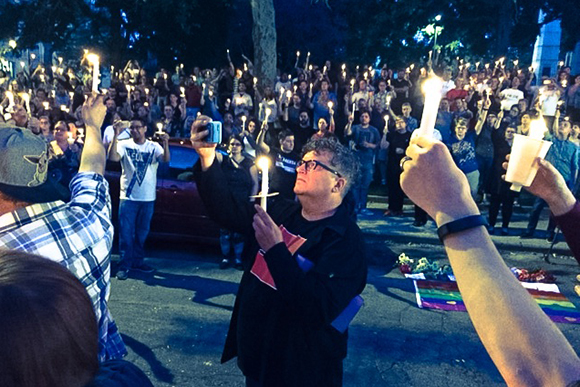 I lit a candle on Sunday night as I gathered downtown outside the Apartment Lounge with the many lesbian, gay, bisexual, transgender and questioning individuals, and their allies, who had gathered to honor the 49 LGBTQ, and their friends, whose voices were extinguished at the Orlando Pulse nightclub on June 12.