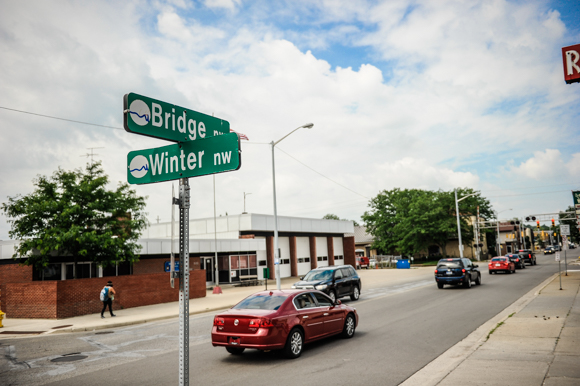 Located at 443 Bridge St. NW under and behind the space currently occupied by Denym and Conscious Collective, and including the adjacent wooded area, sections of the Søvengård will be constructed from shipping containers.