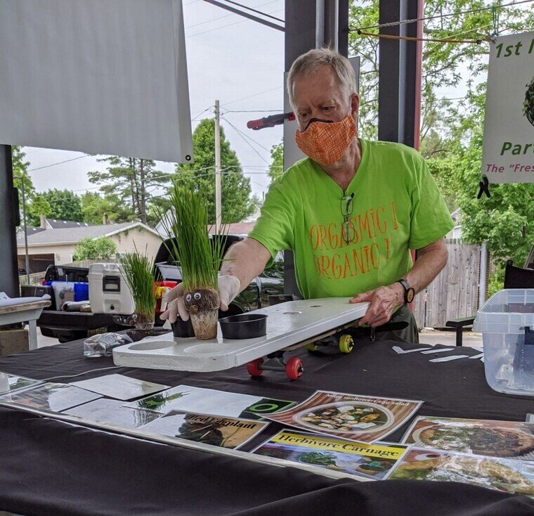 “You can order online and pick up with my socially-distanced delivery system,” Huntoon says. “When you pull up with your car, I’ll send your microgreens out on my plant trolley, a modified skateboard.”