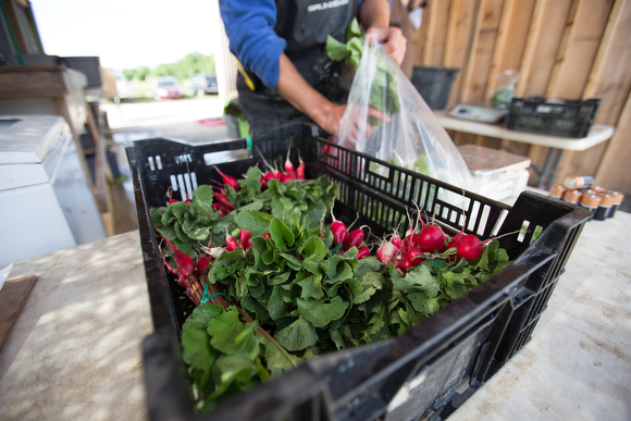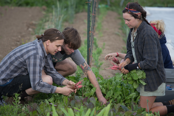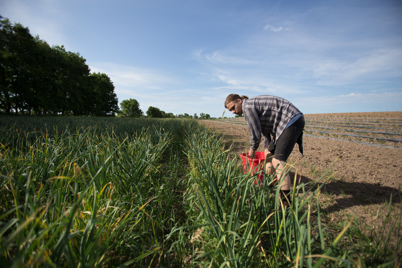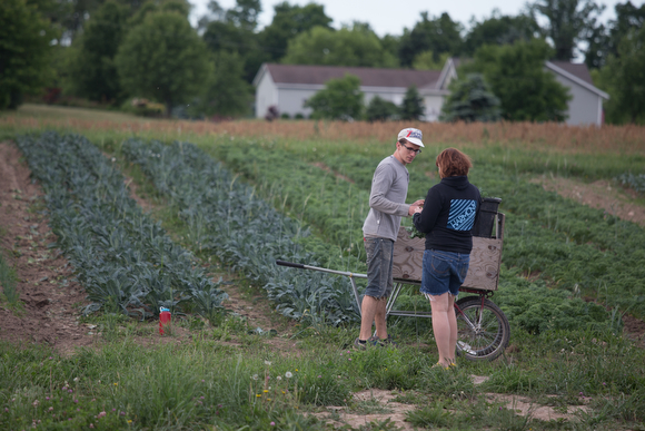 Ten employees from the restaurants in Eastown and the Westside spend hours at Green Wagon, a small-scale venture that grows a diverse range of vegetables and herbs on an 11-acre plot of land situated about 20 minutes away from the center of Grand Rapids, as part of a newfound partnership between the farm and Harmony. Recently, Harmony announced it will be sourcing a variety of produce, from romaine lettuce and basil to spinach and arugula, from Green Wagon, but the relationship between the two organizations is proving to be about much more than a simple food transaction: it is, as Harmony co-owner Heather Van Dyke-Titus explains, a chance to build a stronger community food landscape in which farmers, restaurants and consumers are connected, both in person and with the food they cook and eat. To grow that relationship, Harmony will be bringing employees to work at Green Wagon once a month from here on out.