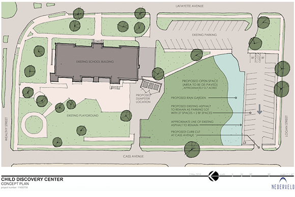 As it currently sits at its Heartside campus on 409 Lafayette SE, more than 75 percent of the Grand Rapids Child Discovery Center grounds are covered in concrete.