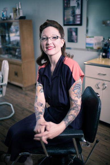 While Moxie Hair & Beauty Parlor will turn three later this year, Strowbridge has been a professional stylist for seven years and a vintage enthusiast for much longer. “I already had the interest and was already styling my hair kind of retro when I went to beauty school, so it was a natural progression. I went to school in Royal Oak, at David Pressley [School of Cosmetology], a private school that had been around for about 50 years.” At that time, Pressley was 99 years old and had been in the hair business since 1927, a suitable professor for a future retro queen. “He was the one who taught me how to finger wave,” says Strowbridge.
