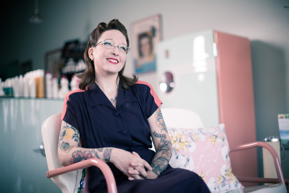 Something that Strowbridge stresses is that while Moxie is the only salon in town specializing in vintage hair, she strives to make her services accessible to all. “We have a retro look, but I want to appeal to everyone. I want the experience to mean something to everyone. I don’t want someone to walk in and think ‘oh, this isn’t for me.’” And she notes that Moxie predominately uses vegan, cruelty free and organic products, including organic perms.