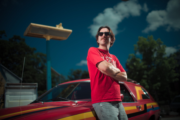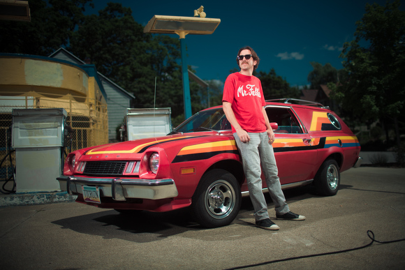 Further evidence of Hudson’s nostalgia-passion is contained in his vast collection of memorabilia, as well as the ’77 Pinto and ’76 Dodge van he owns. The Pinto is frequently seen parked outside of Wealthy Theatre where Hudson works as a A/V technician.