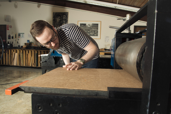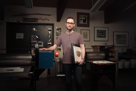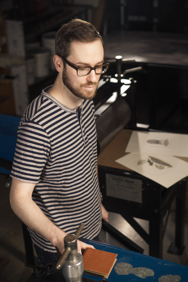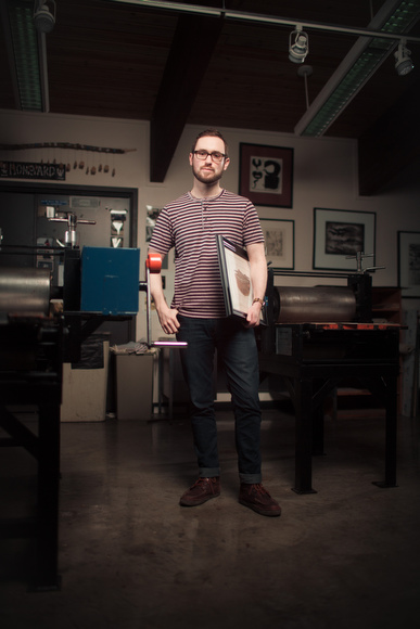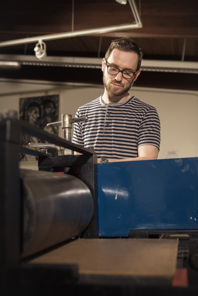 Freeman has been drawing as long as he can remember, with science fiction and comic book characters being his mainstay through high school. “My love of detail and rendering lead to a start in the illustration program at Grand Valley State University,” says Freeman. “In 2001, I took my first printmaking course at GVSU and the possibilities, process and general character of intaglio printing appealed to me in a pretty immediate way.” After a few semesters, Freeman transitioned majors from illustration to printmaking. “I realized a switch to printmaking in the fine art department would allow more creative control and I finally felt like I was making something more my own,” comments Freeman.