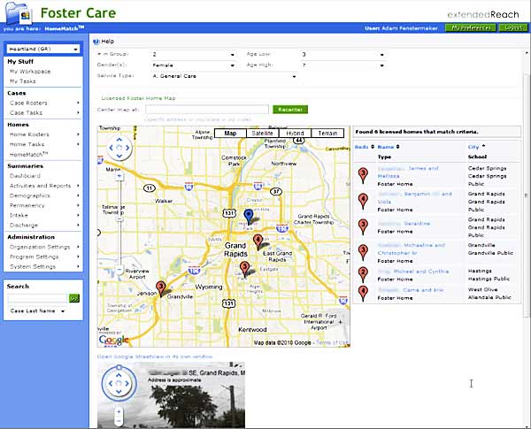 Currently, Adam says he and Bidwell look to sell software exclusively to non-profit private agencies, particularly foster care. Their extendedReach product is used in 10 states and two countries by 21 different organizations. Its functions include a custom foster home search that integrates with Google Maps, as well as automated billing calculations among other features.   That “extremely focused” approach makes more sense, Adam says, since such operations across the country have so many similarities.