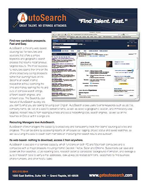 “Years ago when Monster came out, recruiters thought they would be out of business,” Lori said. “It’s the same thing with AutoSearch. It’ll just make them more efficient.”