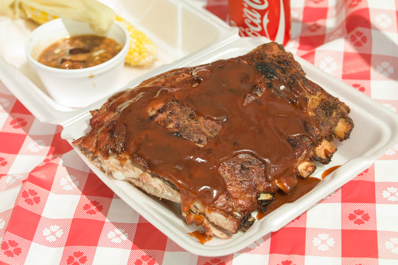 Everette says he cooks with two different styles, depending on what the customer prefers: Chicago style (two layers of sauce) and Memphis style, where the sauce is secondary to the meat.