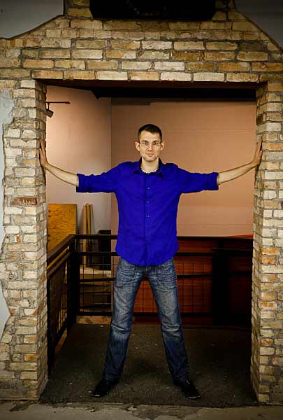 Jeffrey Klynstra, a graduate from Jenison High School who now works as a designer and digital sculptor in Chicago, used 3DS Studio Max and Z Brush to put together a digital printout of a 3-D sculpture of a homeless man, so let a person viewing the two-dimensional artwork perceives it as three dimensional. Originally from the Detroit area, Grand Rapids graphic artist Kyle Hilla used Adobe Illustrator to create a series of seven doors that will be staged along Stocking street with a logo that centers around the infinity symbol.