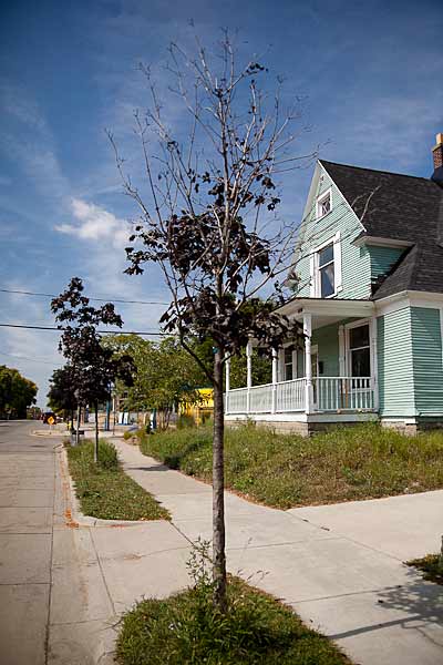 “I saw a story recently that talked about making Grand Rapids greener,” she says. ” One of the projects that was considered innovative was that the planning commission endorsed a program to reduce developers’ green requirements if the developer contributed to the county’s farm preservation program. So…we’re giving city canopy away to preserve a county cornfield. How does that benefit the city? It’s like we have this big blind spot when it comes to our trees because we don’t put a value on them.”