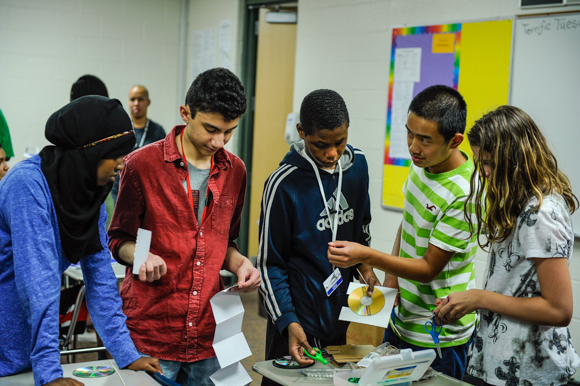 Programs include “Cool Chemistry Concoctions,” where students identify acids and alkaline solutions using cabbage, learn about polymers by making slime, and investigate molecules by making bubbles. In “Fun-omenal Physics,” kids learn about basic physics concepts and machines by working in teams, using the engineering design process. “Crime Scene Investigation” lets students explore forensic science though chromatography, identifying “criminals” with ink evidence. Programs centered on magnets, light and color, environmental conservation, and food science are also offered.