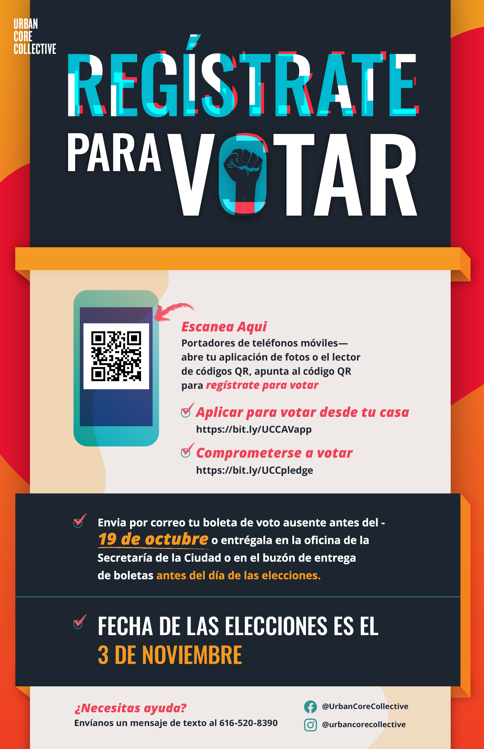 To get Grand Rapids ready for November’s election, the Urban Core Collective has conducted voter education and outreach to increase registration, absentee voting, and poll worker diversity. Virtual storytelling events have highlighted community members’ own experiences to underline the importance of voting.