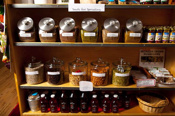 Rop says that the Wealthy Street business community has been “tremendously supportive.” This support has been crucial to helping her get Nourish off the ground. Rop candidly admits that financial assistance for starting a small business is sparse at best. “It can be frustrating. It would be good if there were a stronger retail support system, especially for marketing and technology. Many small businesses just don’t have the budget to afford graphic design and advertising.” She relied on moral support and wisdom of surrounding businesses to help her over some of the early hurdles. Nourish is a small family start-up employing less than 10 people: Rop’s husband Chuck and her two daughters, Cara Camp and Tessa Jesse make up the backbone of the staff. Recently, Nourish hired Kelly Mundt to act as grocery buyer. Rop expects the operation to remain small for quite some time, but hopes to expand enough to have a full deli and a larger selection of offerings.