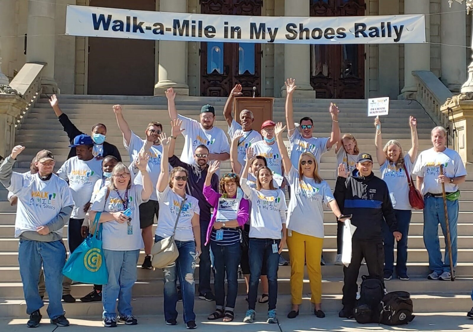 The Community Mental Health Association of Michigan (CMHA) held its 20th Walk a Mile in My Shoes Rally on Tuesday, September 17th. For the past 20 years, the rally has congregated advocates from across Michigan to the Michigan State Capitol building in Lansing to support public behavioral health care. The rally highlights the need for increased funding for mental health services, raises awareness of behavioral health needs in health and policy discussions, and reduces stigma about behavioral health.