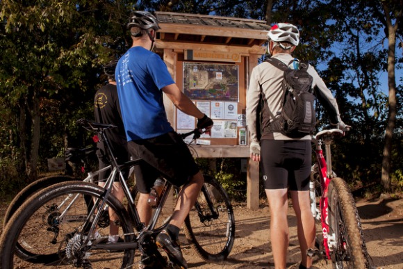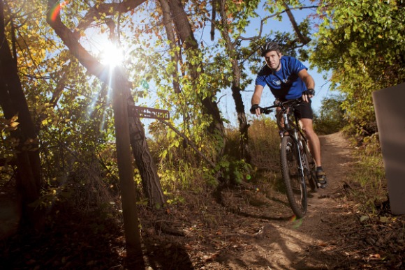 One of the most recent additions to the local trail choices is Plainfield Township’s Merrell Trail, funded by Wolverine Worldwide and Wynalda Printing and called “a rollercoaster on dirt” by WMMBA board member Scott TenCate. The first phase, a six-mile loop that opened in fall 2012, has the distinction of being the first trail in West Michigan that was designed by a professional trail builder and built mechanically. TenCate says it took Spectrum Trail Builders’ Alex Stewart and 2800 local volunteer hours to complete the first loop; the second phase will be finished this year.