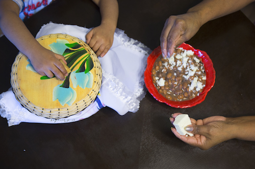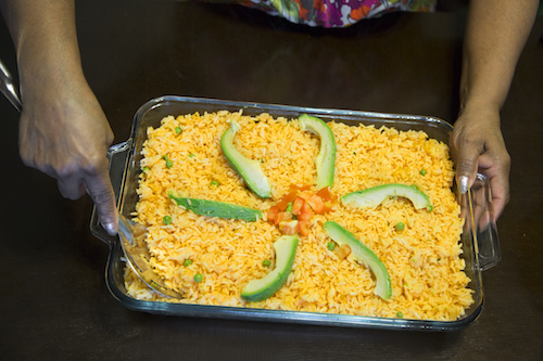 Rodríguez, quien también ha servido en la Acción de Padres Líderes en la escuela Primaria César Chávez, la escuela a la que va su hijo, es la que ha traído al grupo de mujeres para los almuerzos del mediodía con un plato de frijoles al vapor para compartir con los demás.