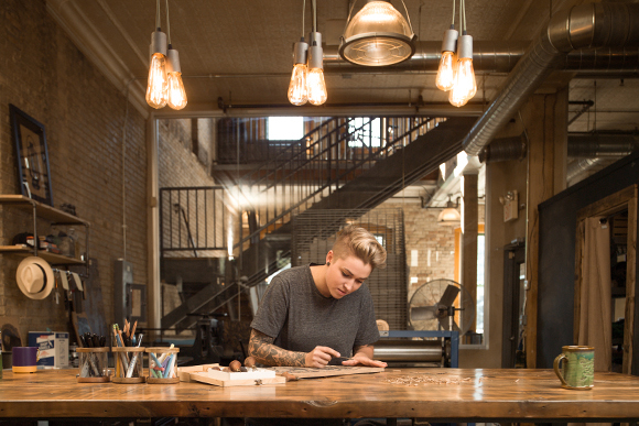 “By our count, Dwelling Place has about 40 live-work spaces in total,” Schaub says, and that number doesn’t even include the third-party landlords. Though South Division’s first live-work spaces didn’t start popping up until the mid-2000s, creative spaces are old hat for the corridor.
