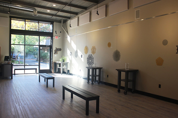 “I feel like I’m home in this new location, especially since I grew up nearby,” Johnson says. “After seeing the building, I knew I wanted to create something in this space. It was a labor of love, a dream for over two years. After a seven month complete interior renovation, the studio and gallery is in personal alignment, as well as in sync with the culture of growth and revitalization of the Eastown neighborhood.”