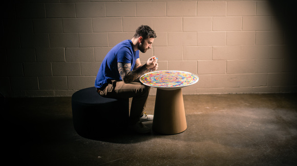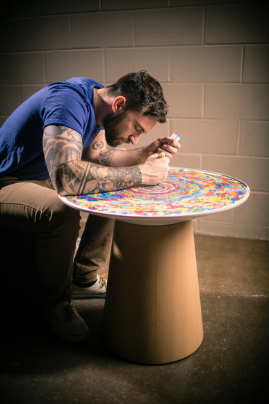 “I think the Campfire Paper Table was the right size. It seemed like a natural choice given the format,” states Anderson, who has collaborated with such high profile clients as Nike, Microsoft, and ESPN. “I love to draw. For me, it was a natural choice. We’re so used to drawing on a normal sheet of paper — and with this piece, I worked in a complete circle.”